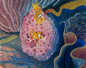 "Sanctuary in the Swell: Clownfish and Anemone on a Living Reef" painting