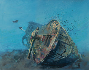 "Bow of the S.S. Saganaga" original painting of a WW2 wreck in Newfoundland