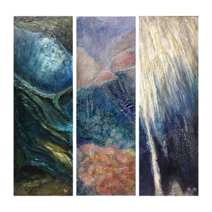 Underwater Scuba Dive Art Triptych: Reefs & Caves – Mixed Media Acrylic Paintings on Wood Panels